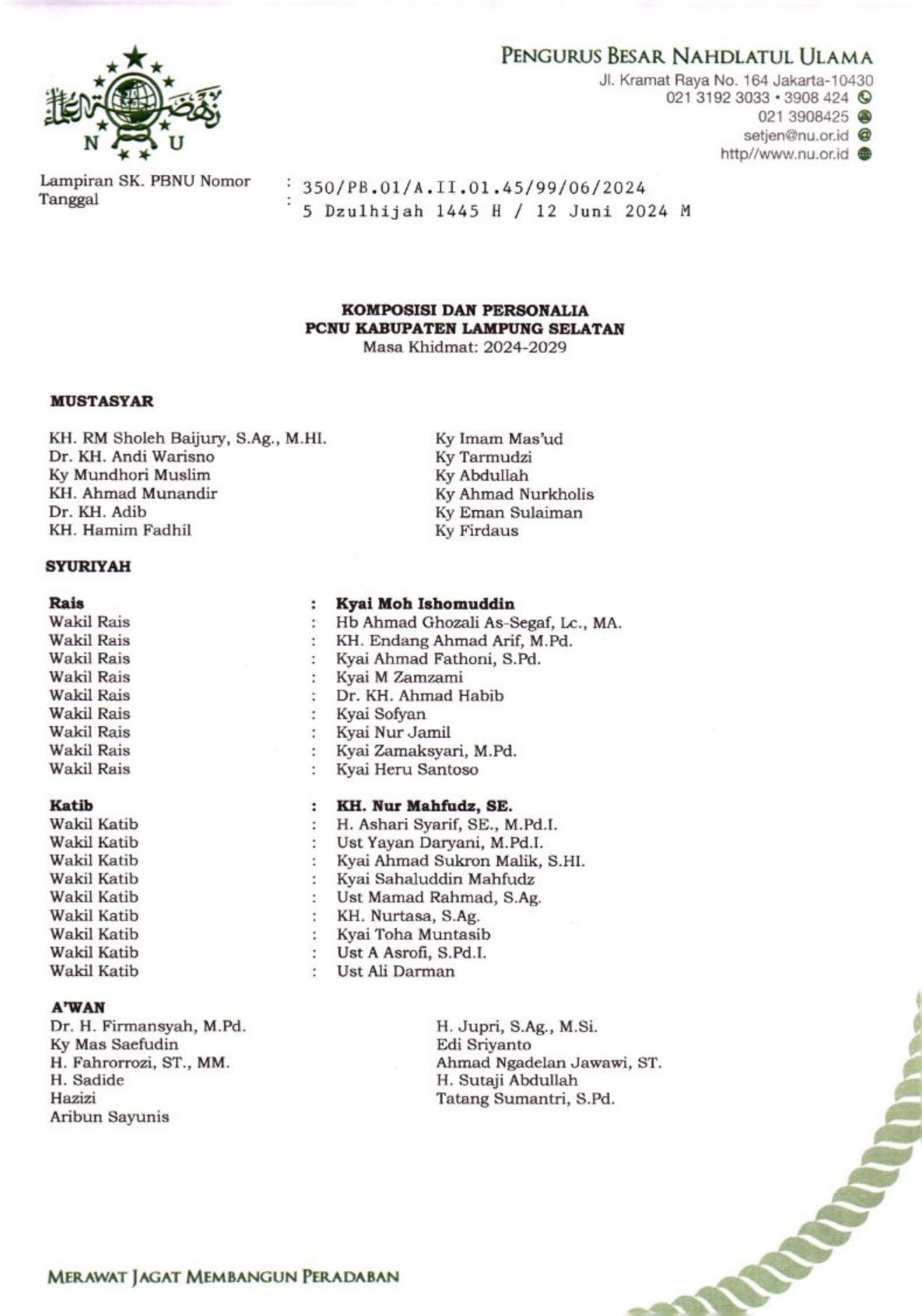 SK Pengurus PCNU Kabupaten Banyuwangi Periode 2024-2029